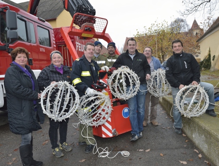 Am Freitag dem 23.November 2012 rückten einige Kameraden mit dem neuen Versorgungsfahrzeug mit Kran aus und konnten mit Hilfe des Arbeitskorbs die weihnachtliche Beleuchtung an der Eiche vor dem Schloss Atzenbrugg anbringen.