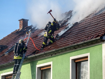 Aus bisher unbekannter Ursache war in dem Stockhaus im oberen Dachbereich ein Feuer ausgebrochen, dessen Rauchsäule bereits weithin sichtbar war.