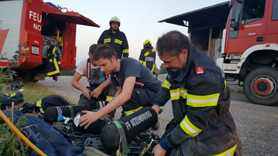 Die diesmal von der FF Trasdorf ausgearbeitete Übung hatte als Annahme einen Brand mit mehreren vermissten Personen in einer Halle der Familie Zischkin.