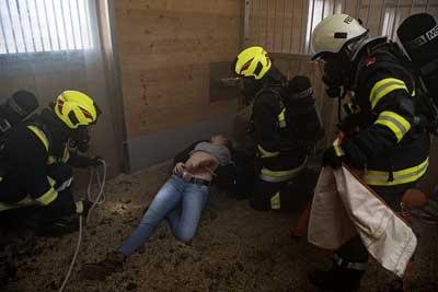 Annahme war ein Brand im Bereich des Pferdestalls, bei dem auch mehrere vermisste Personen zu retten waren. Die drei Feuerwehren Trasdorf, Heiligeneich und Atzenbrugg rückten zur Übung mit rund 60 Mitgliedern aus und gingen mittels Tanklöschfahrzeugen und schwerem Atemschutz zur Menschenrettung vor. Gleichzeitig wurde von der nahegelegenen Schottergrube eine Wasserversorgung hergestellt.