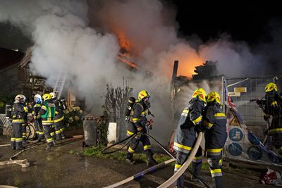 Am nördlichen Ufer des Föhrensees war ein Baucontainer in Brand geraten und das Dach eines angrenzenden Blockhauses sowie ein Carport waren ebenfalls bereits von den Flammen erfasst.